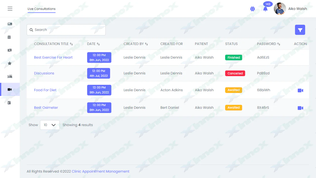 Here doctors can see their appointments only, they can later change the status to checked-in, check-out and cancel.