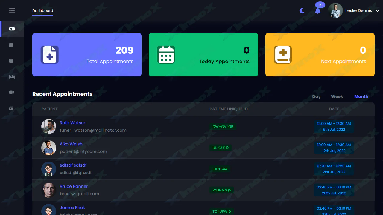 Doctors can see lists of today’s appointments count and other widget in dashboard. they can also able to see the lists of recent appointments as per day / week / month.