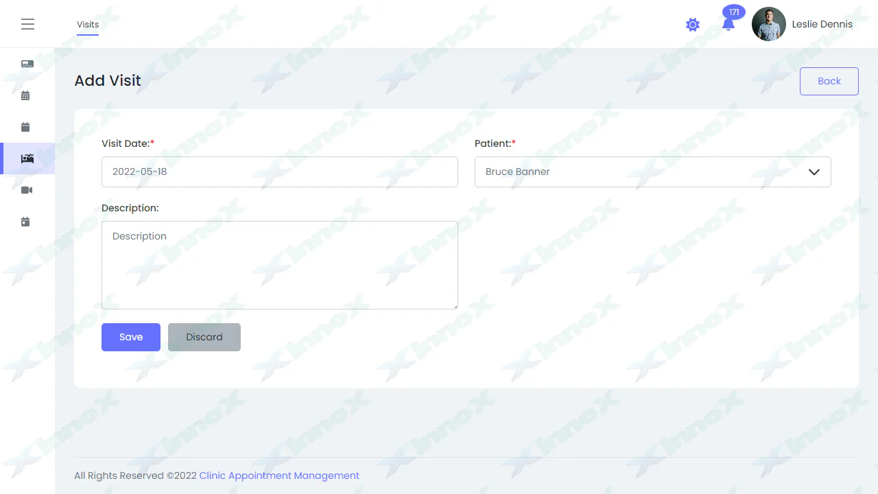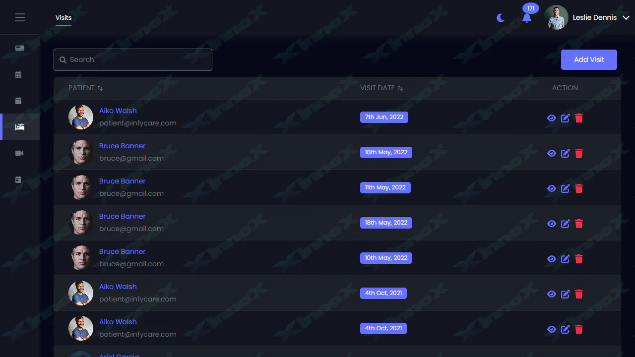 Admin can add / delete patient visits records from here. Patient visits are the records who will be entered by the doctors to track patients visits and the other information about their patients.