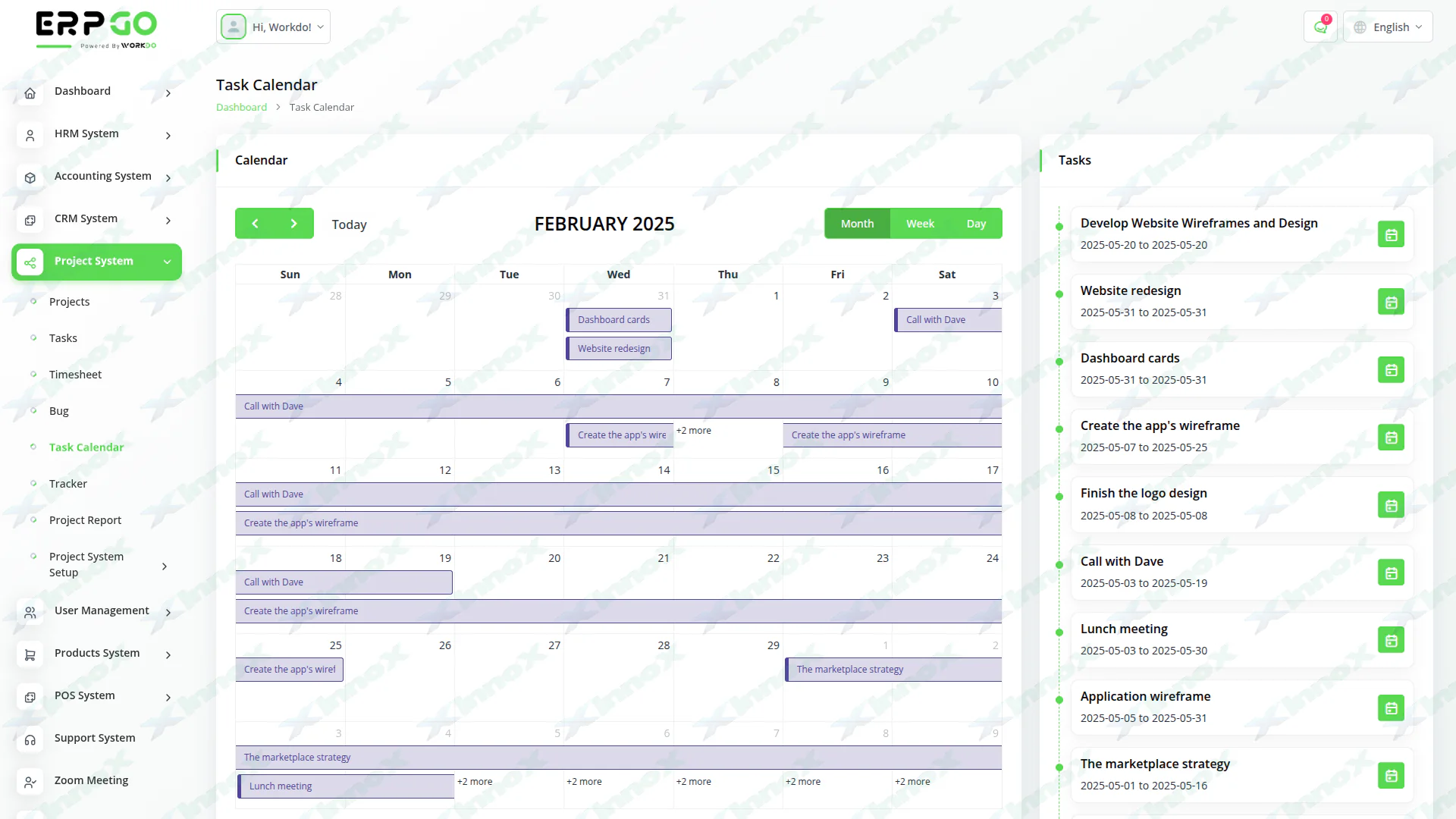 ProERP has the most comprehensive dashboard with all the essential details under one head. We all can agree that dashboards have made our lives easier. Well, from every minute detail like total Clients, Users, Invoices, Projects, and estimations to Leads, Deals, and items, you can get quantitative data in the most simple layout. You get an overview of Estimates, Invoices, top-due Payments, Projects, and Tasks to take timely actions. Get a reminder of meeting Schedules, Expiring Contracts, Weekly Events, and new clients as you scroll down. Lastly, a Pie Chart can help you understand various project statuses. In short, every activity of your business can be handled through this useful tool.