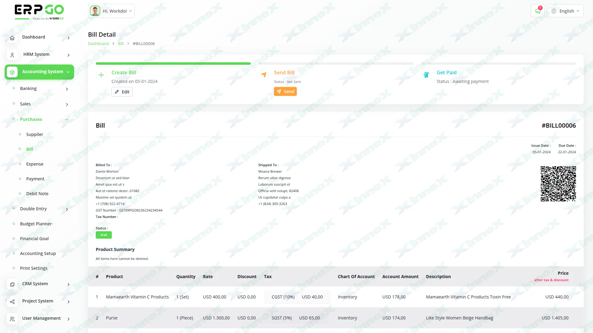 Here, through the inventory management feature, you can monitor the inventory of each item you have registered with you. After generating the Invoice/ Bill, the quantity will automatically be updated in “Product & Services” for scrutiny. Overall, it is painless to maintain the inventory level of the products.