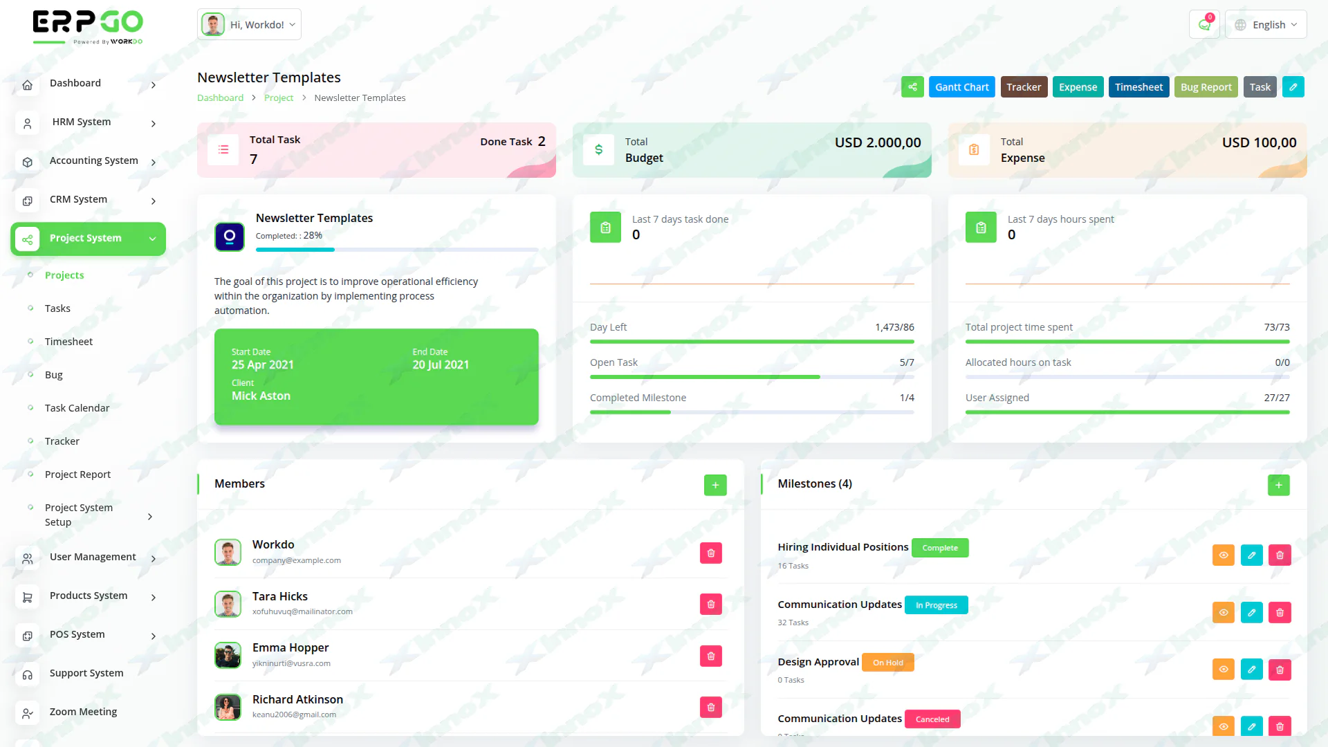 You can manage and filter each project available in Kanban and List view again. Get an overview of Project Status, Expenses, Budget, and Due Date to manage projects. Add or Remove the users and check tasks completed by them. Create a task list and assign priority to each task. Get an overview of tasks through the Kanban board. Add Milestones, Notes, Files, Comments, Payments, Timesheets, Client Feedback, Expenses, Invoices, and anything related to the project. Think of a project and consider everything you would need to manage for a successful project. Well, you get to manage them easily with ProERP SaaS.