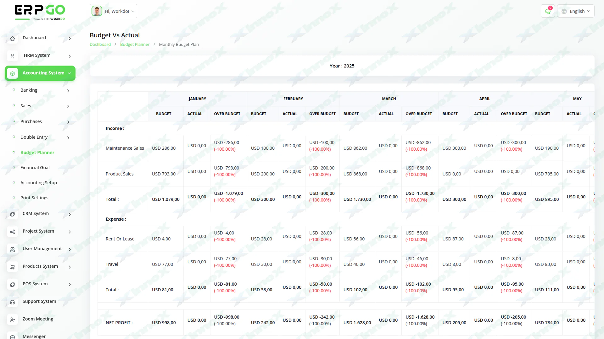 A budget is a financial plan for a specified period to keep in check with the working capital. This feature here helps to maintain the capital flow. You can set monthly, quarterly, half-yearly, or yearly budgets according to your business plans and needs. The main categories are “Income” and “Expense” where one can edit /update /delete the sub-categories as well.