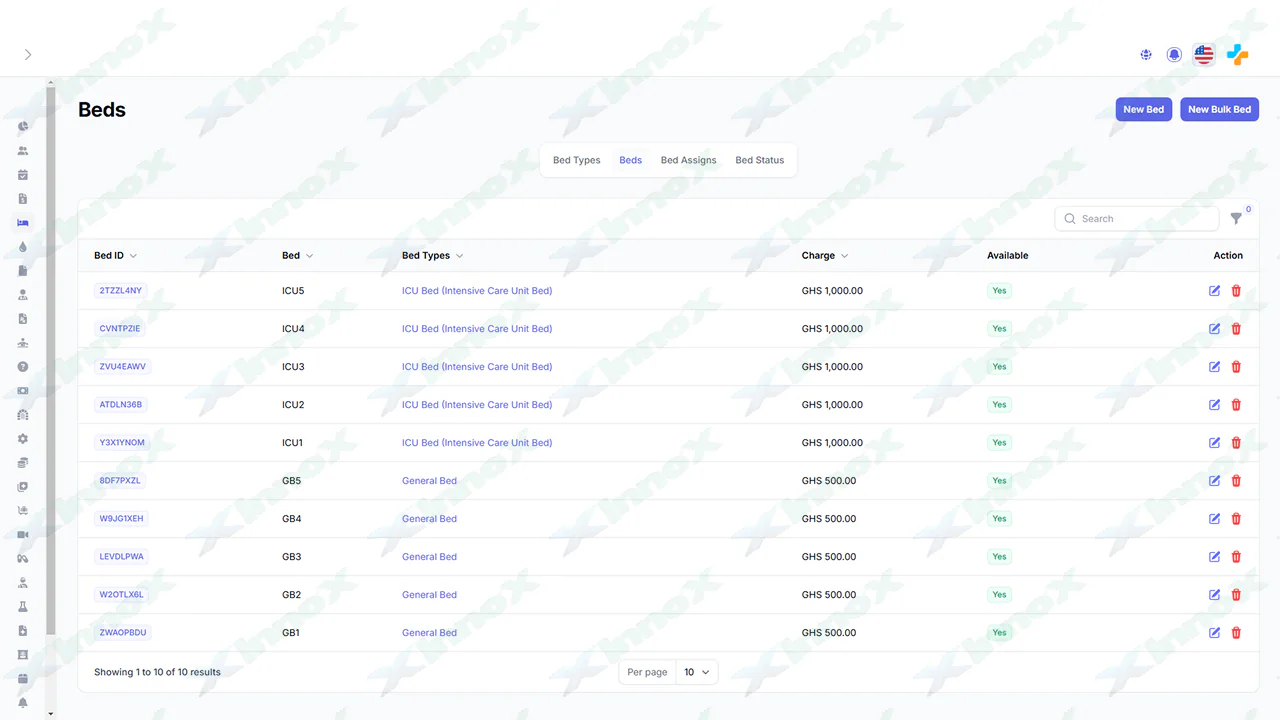 Bed managers can add multiple beds and their proper information like Bed Type and all other things related to beds. By default, beds are created as available. Once the bed is assigned to some patient it automatically changed to unavailable.