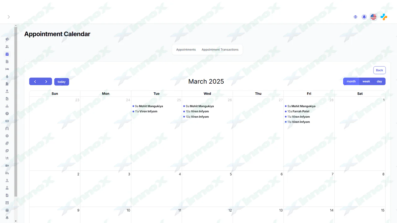Admin/Doctors/Patient will be able to see the list of appointments. Admin can see a list of all appointments. It also has support for the calendar view for appointments. You can see a list of appointments in the calendar form too.