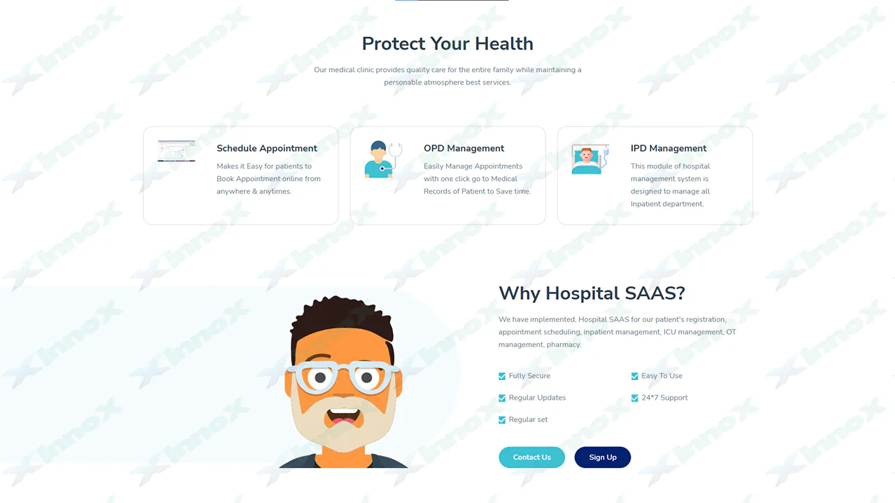 In Landing page we are showing the basic hospital information with its services and staff lists.