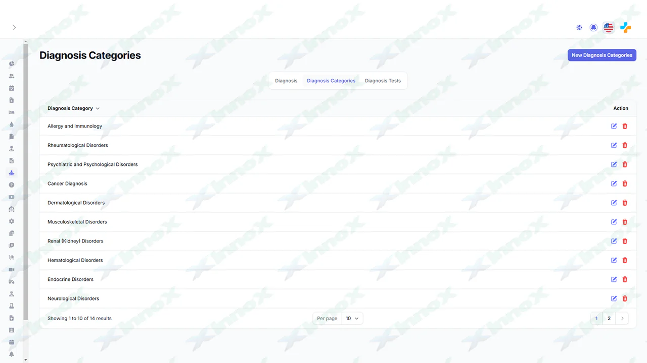 Admin can add different types of diagnosis categories which is used in patient diagnosis test.