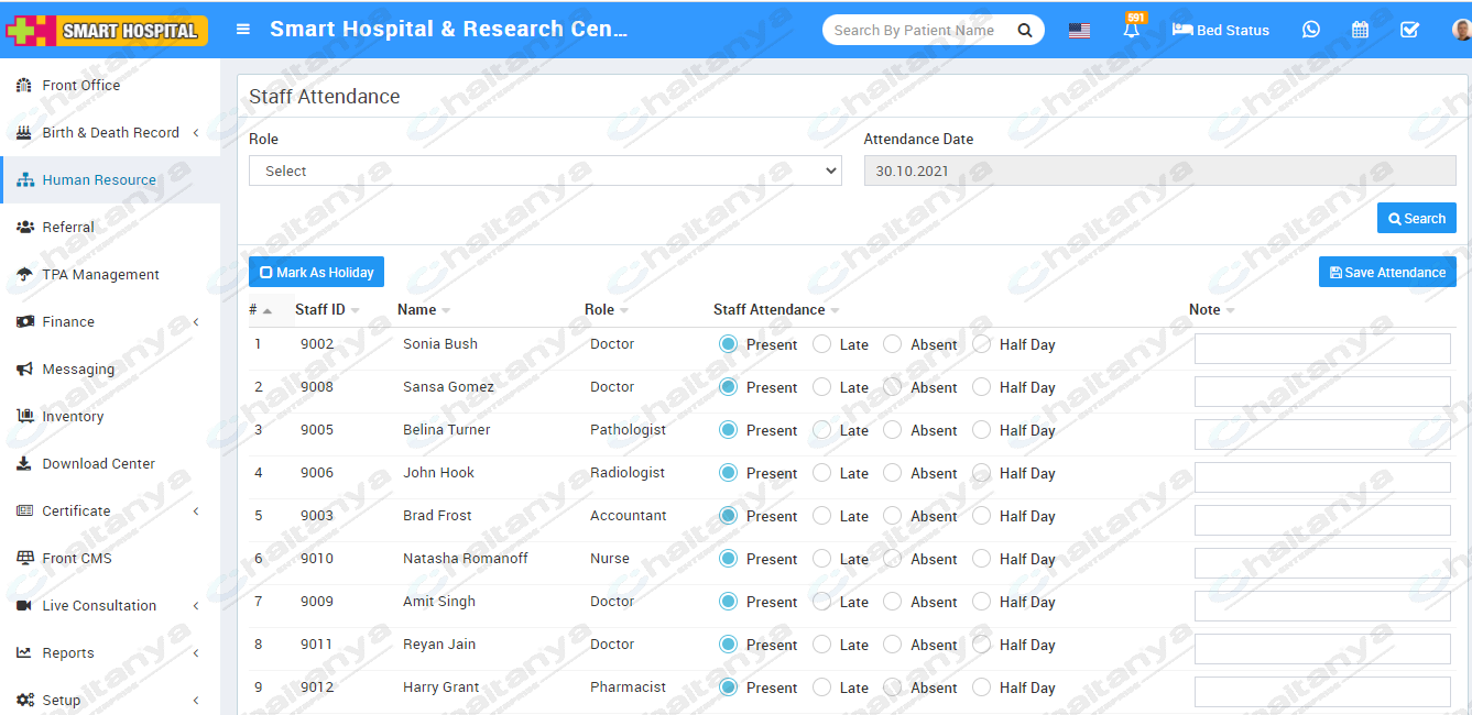 - Multiple row insert added in Pharmacy, Symptoms, Finding, Expense Head, Income Head, Referral Category, Appointment Priority, Item Category, Operation, Operation Category, Source, Complaint Type, Purpose pages